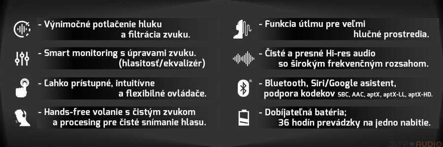 - Dôsledné potláčanie hluku a filtrovanie zvuku